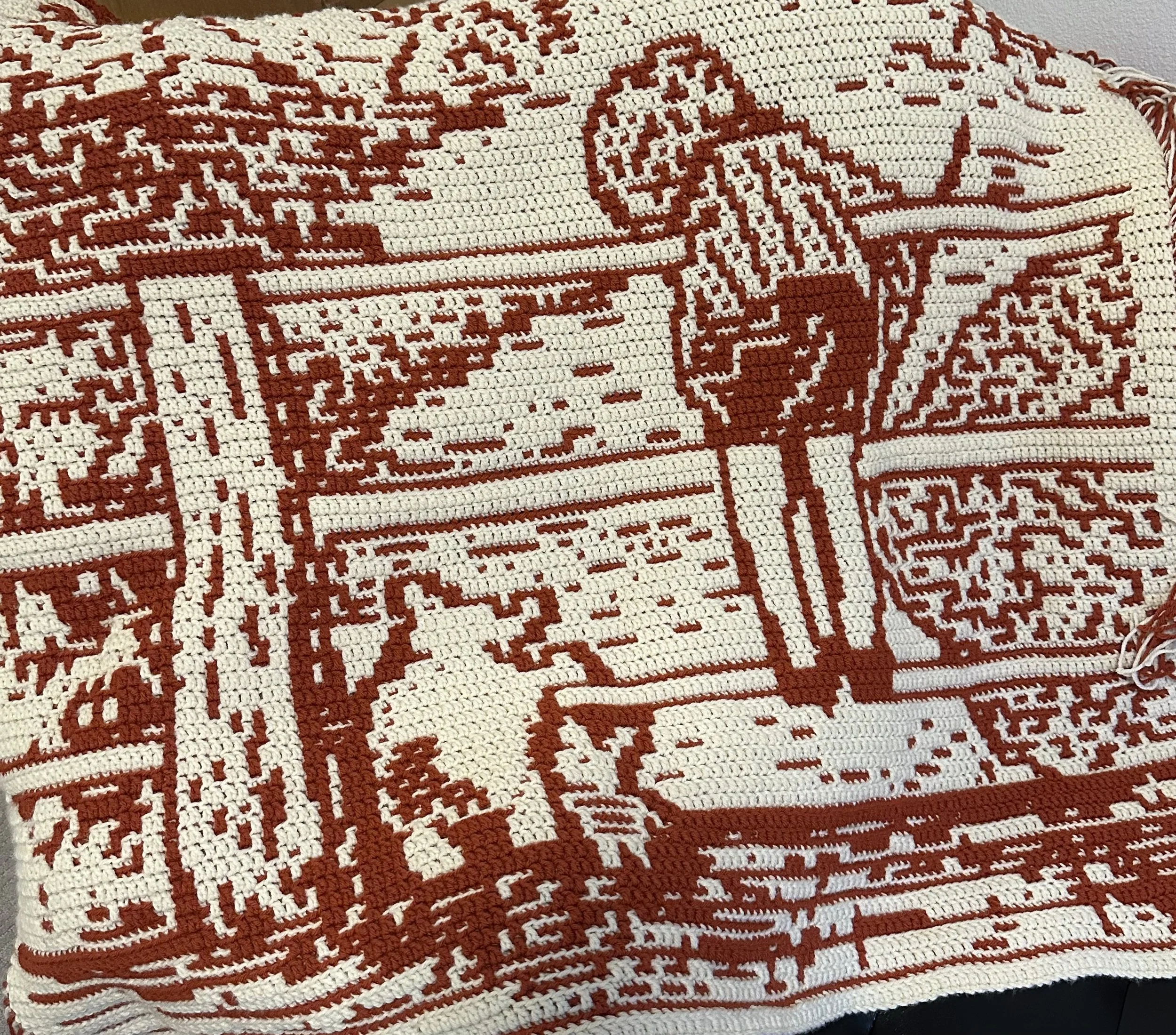 Categories: All Apparel Home Decor Baby Shower Yarn All / Classic Pooh Reversible Mosaic Crochet Throw Blanket $649.99